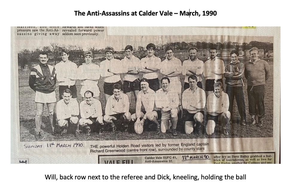 Shortly thereafter I was asked if I would captain the Anti-Assassins at Calder Vale. Oh, and by the way would it be OK if Will were asked to play as well. Wow! What an opportunity to join a very short list of father and son team-mates at the exalted Anti-Assassins level. Even better, Calder Vale was almost a second home for me in those days. I had presented the prizes on Awards Night, I had spoken at the Club Dinner and I had taken the Shireburn Gentlemen there for a couple of Sunday fund-raisers. I knew I was in for a warm welcome, both on and off the pitch, and I briefed Will accordingly. It ran along the lines of: