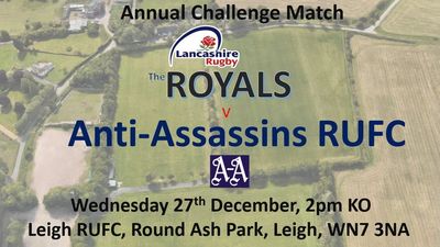 It is regrettable, but not surprising, that John Greenwood and Howard Hughes, Lancashire County RFU Team Secretary, have agreed to cancel the Lancashire Royals v A-As' match on Mon 27th December at West Park, St Helens RUFC. This is as a result of the increasing incidence of Covid cases and advice received from the RFU.